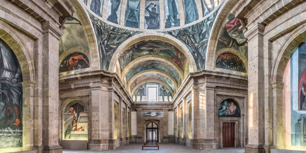 El proyecto del Hospicio Cabañas estuvo a cargo del arquitecto valenciano Manuel Tolsá, su bello diseño neoclásico con frontón y columnas en orden dórico. Al interior, se encuentran varios murales del artista José Clemente Orozco, entre los que destaca El Hombre de Fuego, una obra dentro de la cúpula principal de la capilla. En el presente, este recinto es conocido como Museo Cabañas y recibe a millones de visitantes de todas partes del mundo.