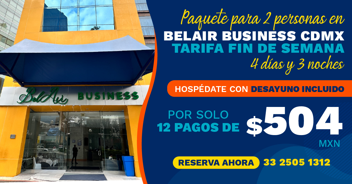 BelAir Business CDMX: Estancia de fin de semana con desayuno continental.